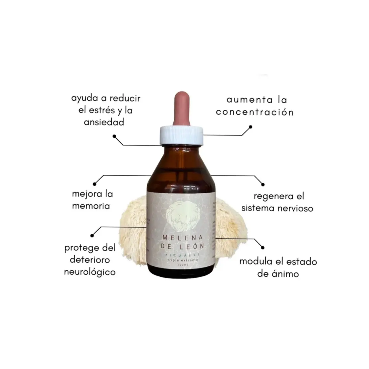 MELENA DE LEÓN: Ayuda a reducir el estrés y la ansiedad, aumenta la concentración, mejora la memoria, regenera el sistema nervioso, modula el estado de ánimo, protege del deterioro neurológico.